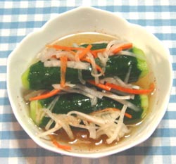 ・キュウリは、飾り切りにしましたが、大き目の乱切りでもOK♪