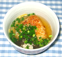 2.大き目の茶碗に焼きおにぎりを入れ、小口切りにした小ネギと