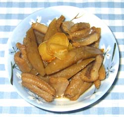 3.穴子が浸るくらいの湯を沸かし、ショウガと共に穴子を煮ます。