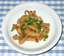 1.鳥皮は、1cm位の細切りにします。