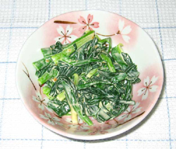 湯を沸かし、塩小匙1/2弱を入れ、ネギを茹でる。